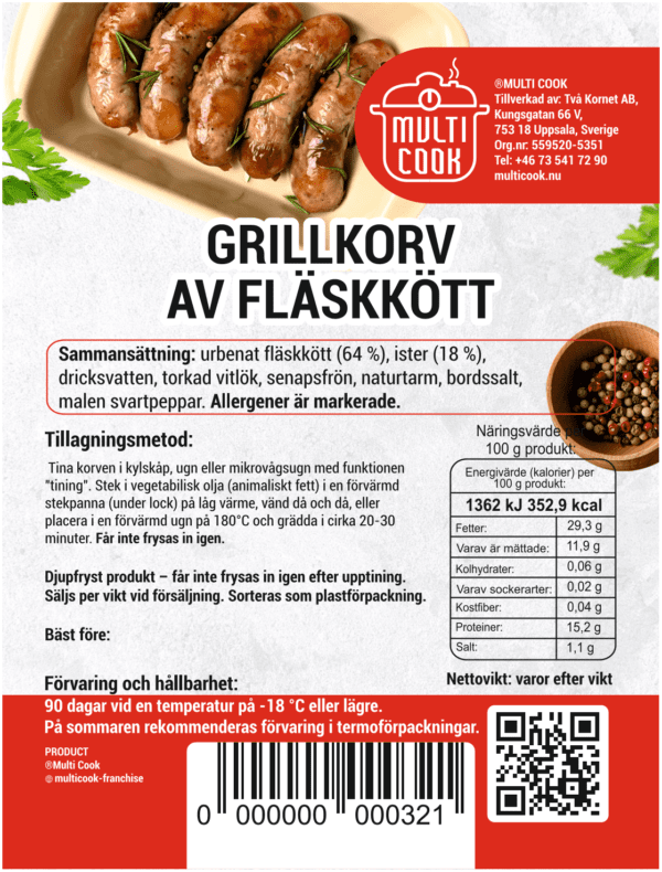 Grillkorv av fläskkött