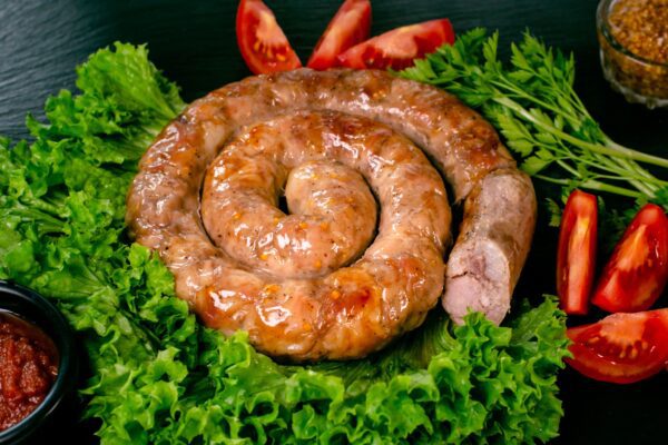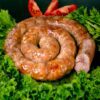 urbenat fläskkött (64 %), ister (18 %), dricksvatten, torkad vitlök, senapsfrön, naturtarm, bordssalt, malen svartpeppar.