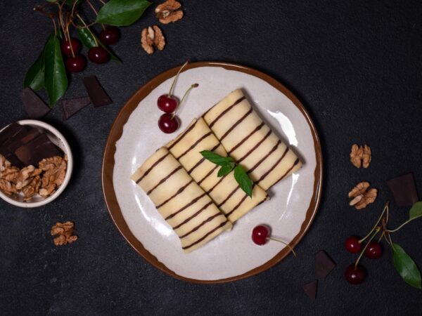 Mlyntsi (crepes) med körsbär och choklad