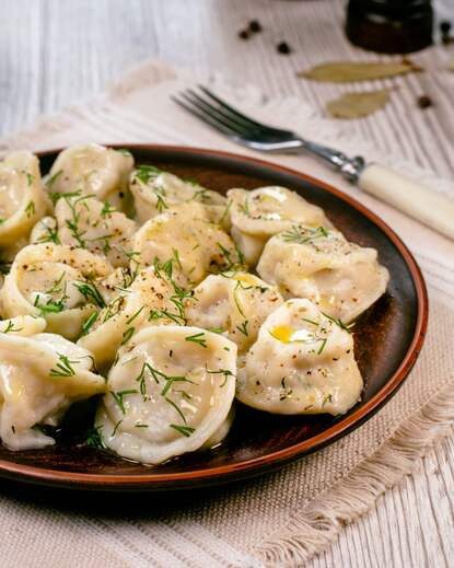 Pelmeni enligt traditionellt ukrainskt recept passar utmärkt som en egen rätt till en mättande lunch, men även som del i andra maträtter.